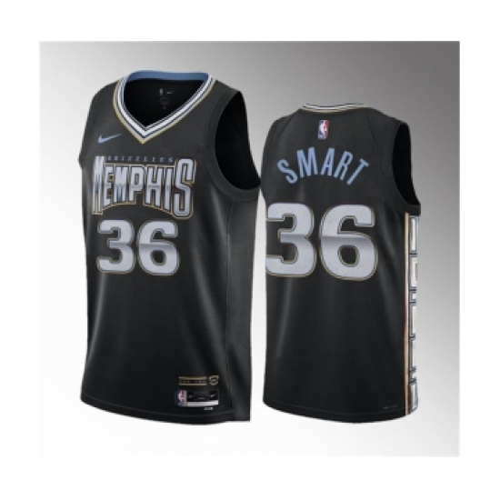 >Men's Memphis Grizzlies #36 Marcus Smart Black 2023 Draft City Edition Stitched Basketball Jersey1
