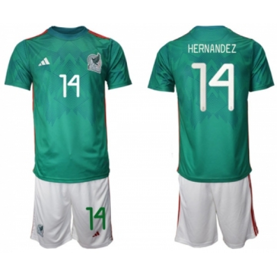 >Men's Mexico #14 Javier Hernández Green Home Soccer Jersey Suit