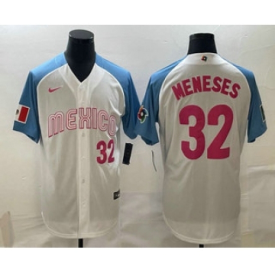 Men's Mexico Baseball #32 Joey Meneses Number 2023 White Blue World Classic Stitched Jersey