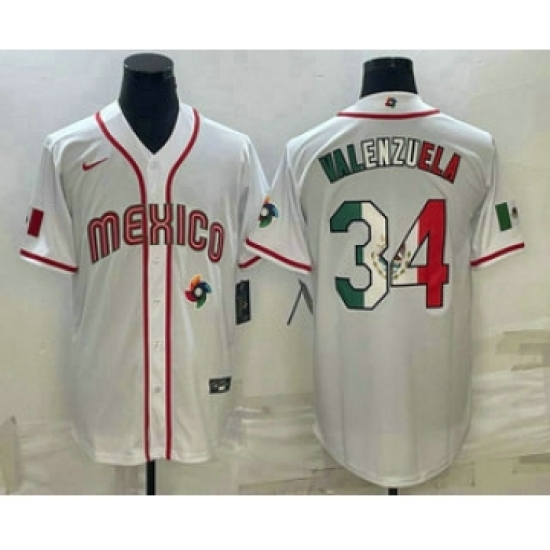 Men's Mexico Baseball #34 Fernando Valenzuela 2023 White World Classic Stitched Jerseys