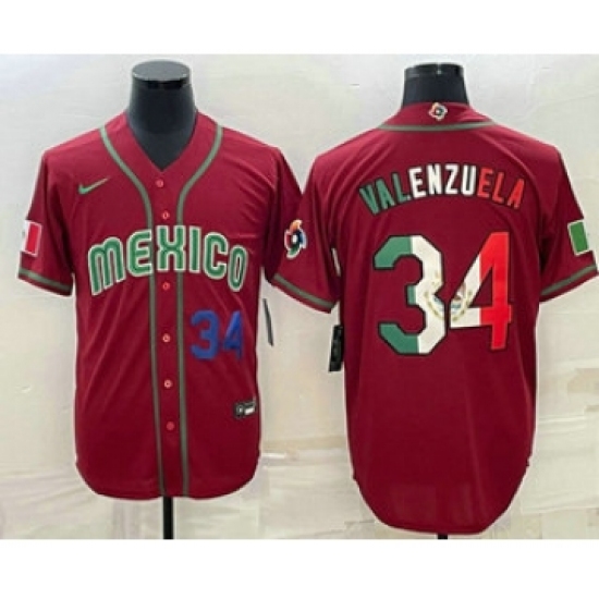 Men's Mexico Baseball #34 Fernando Valenzuela Number 2023 Red Blue World Baseball Classic Stitched Jersey