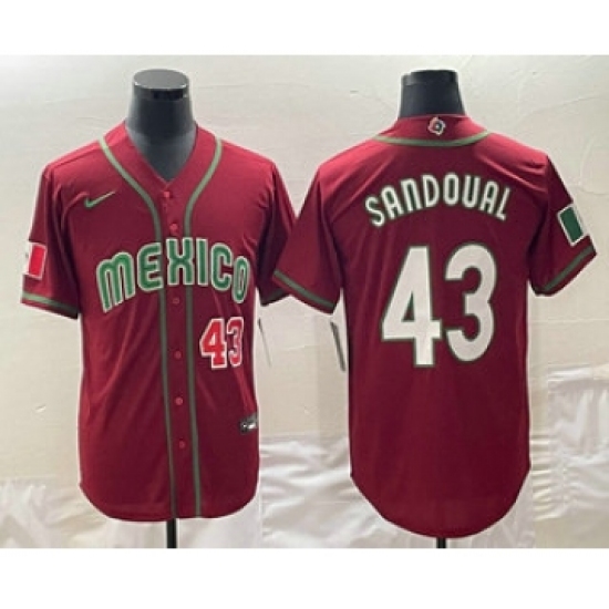 Men's Mexico Baseball #43 Patrick Sandoval Number 2023 Red World Classic Stitched Jersey1
