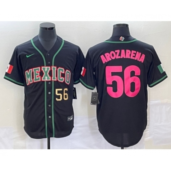 Men's Mexico Baseball #56 Randy Arozarena Number 2023 Black Pink World Classic Stitched Jersey5
