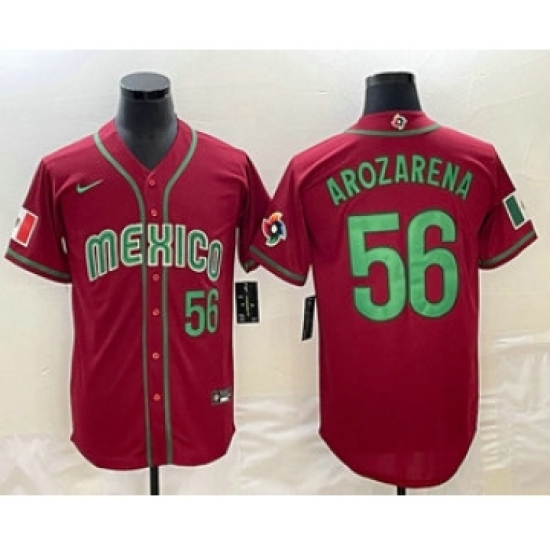 Men's Mexico Baseball #56 Randy Arozarena 2023 Red World Classic Stitched Jerseys