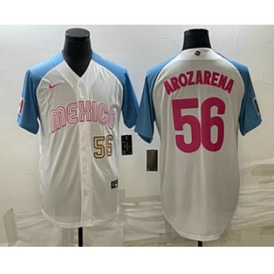 >Men's Mexico Baseball #56 Randy Arozarena Number 2023 White Blue World Classic Stitched Jersey10