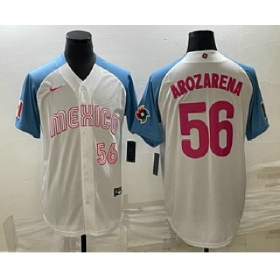 >Men's Mexico Baseball #56 Randy Arozarena Number 2023 White Blue World Classic Stitched Jersey7