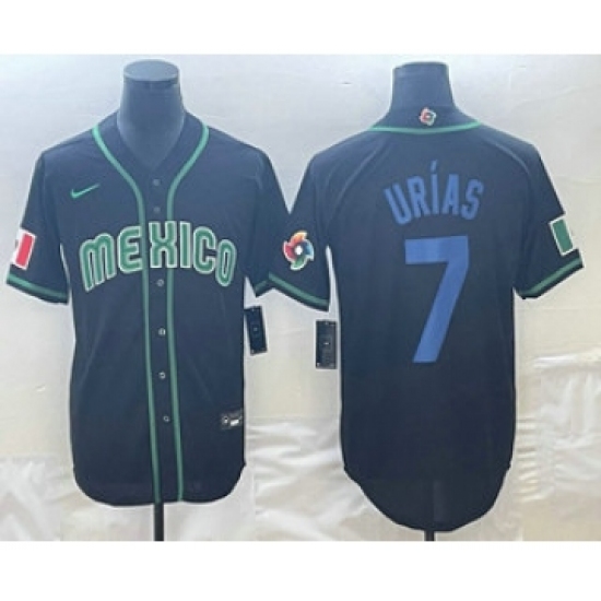 >Men's Mexico Baseball #7 Julio Urias 2023 Black Blue World Classic Stitched Jersey