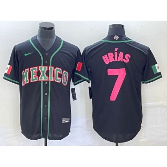 Men's Mexico Baseball #7 Julio Urias 2023 Black Pink World Classic Stitched Jersey