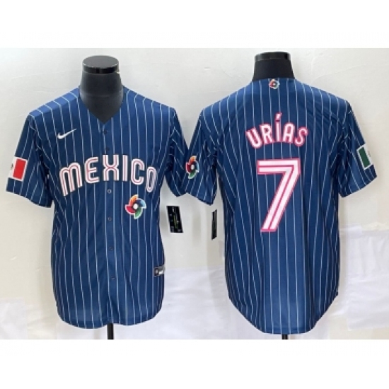 Men's Mexico Baseball #7 Julio Urias 2023 White Blue World Classic Stitched Jerseys