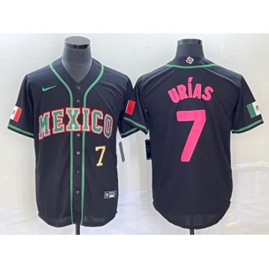 >Men's Mexico Baseball #7 Julio Urias Number 2023 Black Pink World Classic Stitched Jersey5