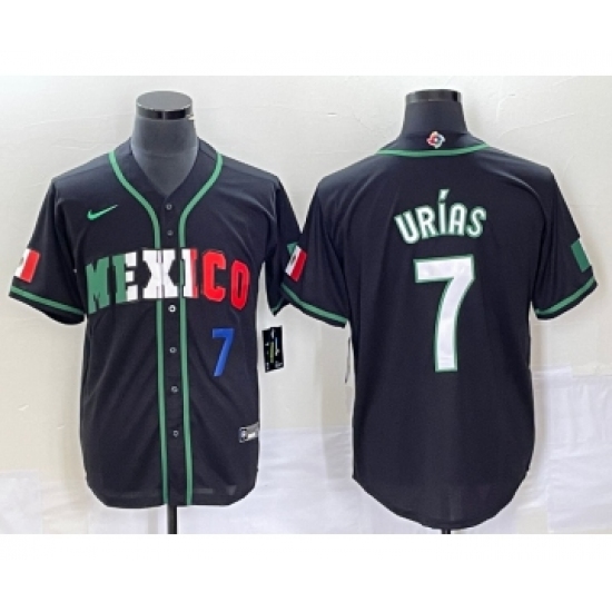 Men's Mexico Baseball #7 Julio Urias 2023 Black White World Classic Stitched Jersey