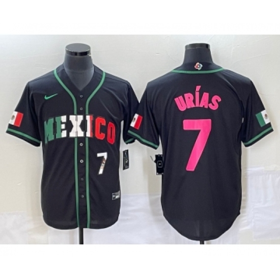 >Men's Mexico Baseball #7 Julio Urias Number 2023 Black World Baseball Classic Stitched Jersey