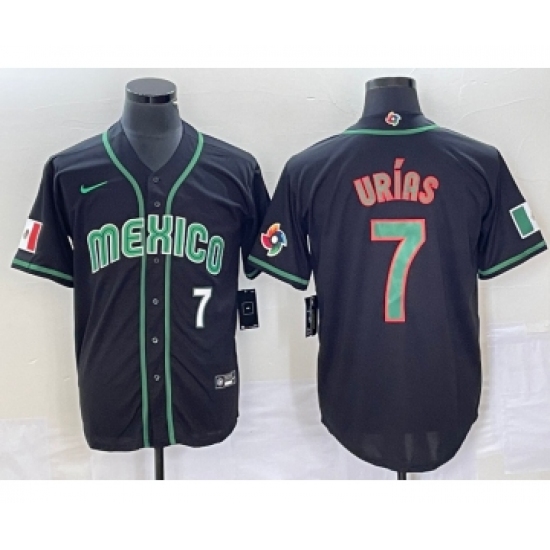 >Men's Mexico Baseball #7 Julio Urias Number 2023 Black World Classic Stitched Jersey3