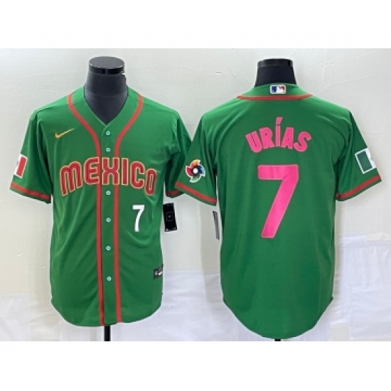 Men's Mexico Baseball #7 Julio Urias Green 2023 World Baseball Classic Stitched Jersey1