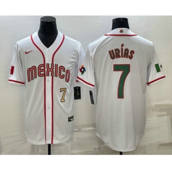 Men's Mexico Baseball #7 Julio Urias Number 2023 White Blue World Baseball Classic Stitched Jerseys