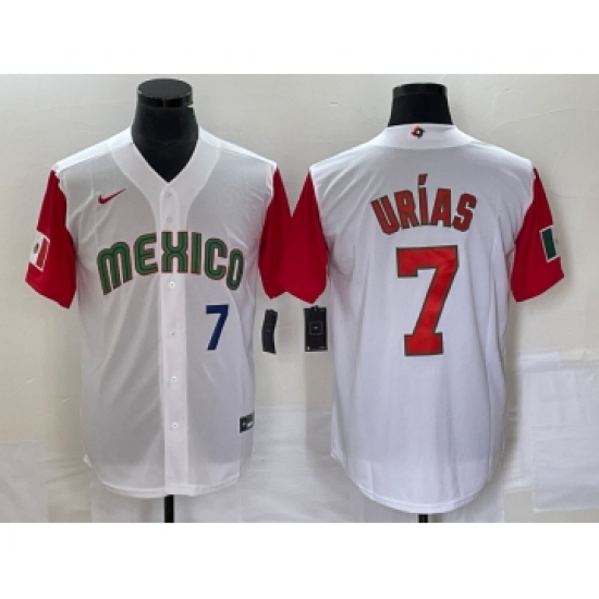Men's Mexico Baseball #7 Julio Urias Number 2023 White Red World Classic Stitched Jersey20