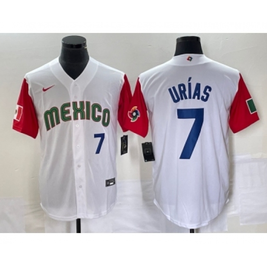 Men's Mexico Baseball #7 Julio Urias Number 2023 White Red World Classic Stitched Jersey54