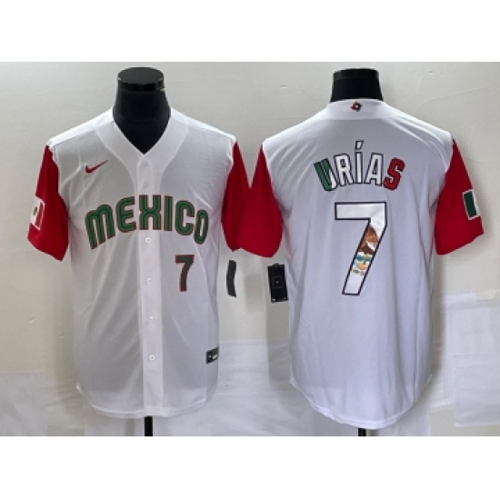 >Men's Mexico Baseball #7 Julio Urias Number 2023 White Red World Classic Stitched Jersey8