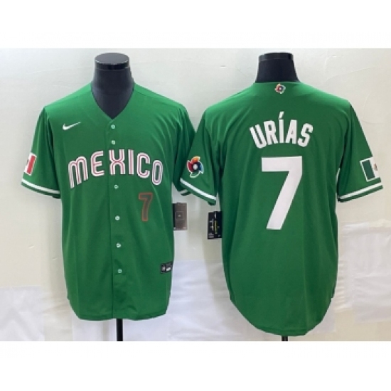 >Men's Mexico Baseball #7 Julio Urias Number Green 2023 World Baseball Classic Stitched Jersey 2