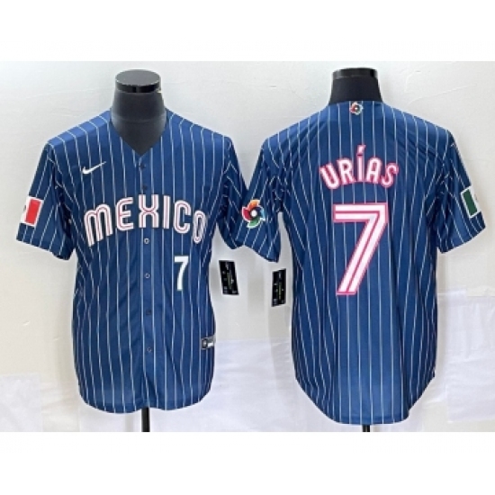 Men's Mexico Baseball #7 Julio Urias Number 2023 Black Blue World Classic Stitched Jersey2