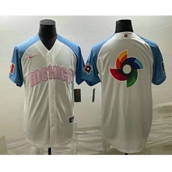 Men's Mexico Baseball Big Logo 2023 White Blue World Classic Stitched Jersey2