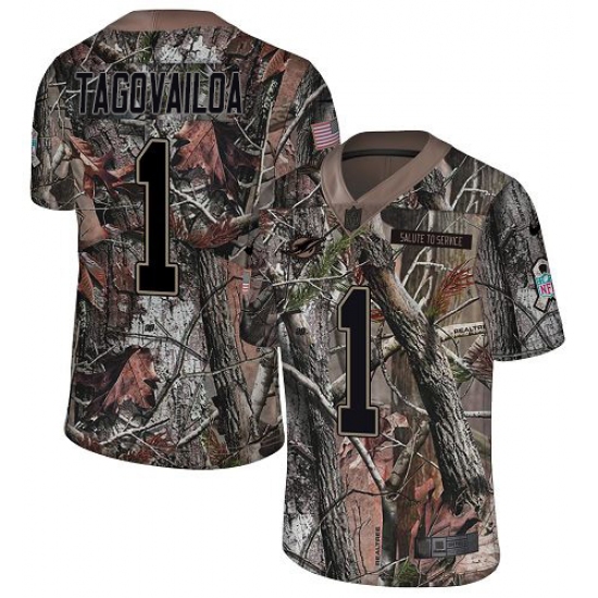 Men's Miami Dolphins #1 Tua Tagovailoa Camo Stitched Limited Rush Realtree Jersey