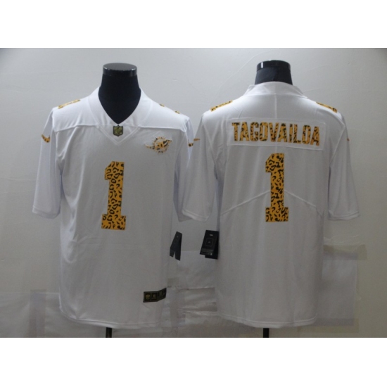 Men's Miami Dolphins #1 Tua Tagovailoa White Nike Leopard Print Limited Jersey