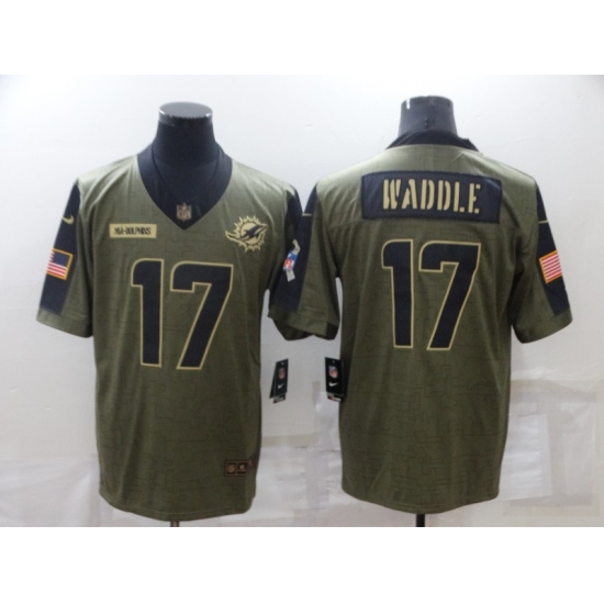 >Men's Miami Dolphins #17 Jaylen Waddle Nike Olive 2021 Salute To Service Limited Player Jersey