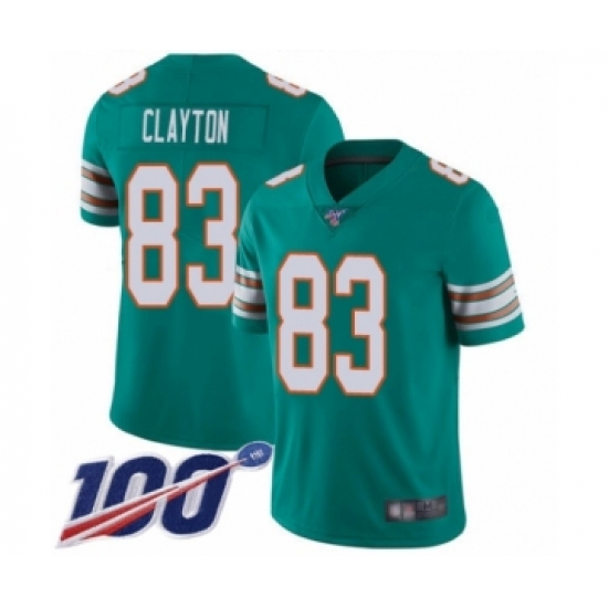 >Men's Miami Dolphins #83 Mark Clayton Aqua Green Alternate Vapor Untouchable Limited Player 100th Season Football Jersey