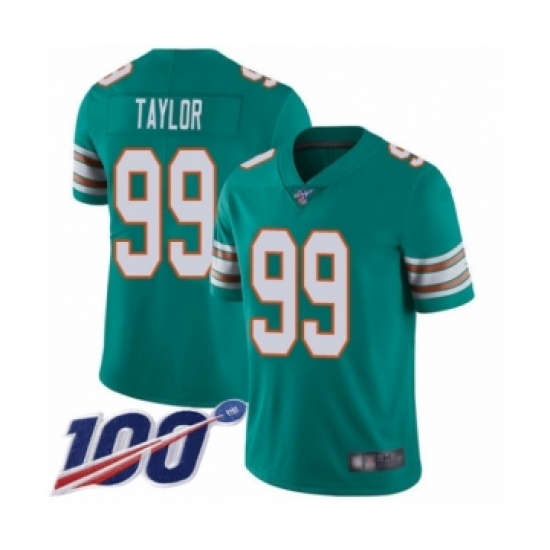 Men's Miami Dolphins #99 Jason Taylor Aqua Green Alternate Vapor Untouchable Limited Player 100th Season Football Jersey