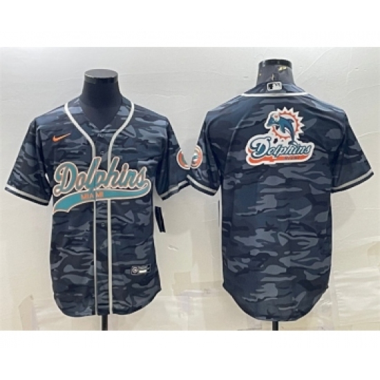 >Men's Miami Dolphins Gray Camo Team Big Logo With Patch Cool Base Stitched Baseball Jersey