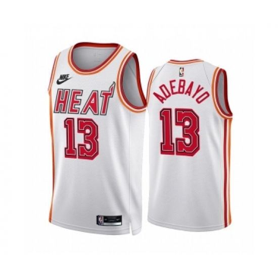>Men's Miami Heat #13 Bam Adebayo White Classic Edition Stitched Basketball Jersey