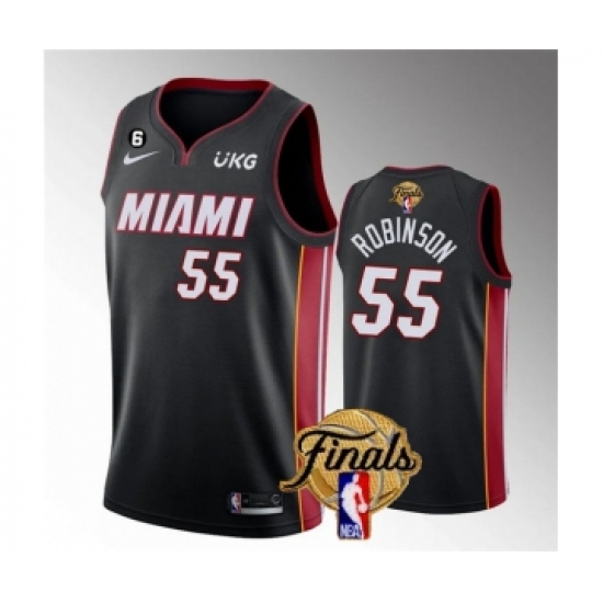 Men's Miami Heat #55 Duncan Robinson Black 2023 Finals Icon Edition With NO.6 Stitched Basketball Jersey