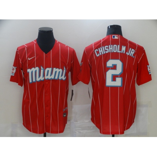 Men's Nike Miami Marlins #2 Jazz Chisholm Red 2021 City Connect Replica Jersey