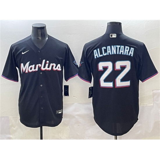 Men's Nike Miami Marlins #22 Sandy Alcantara Black Alternate Stitched Baseball Jersey