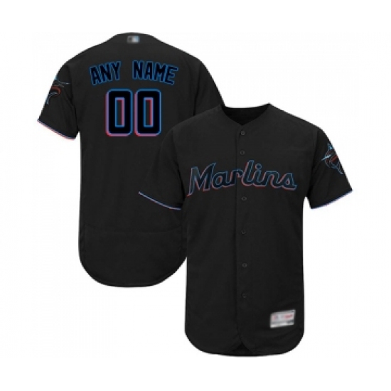 Men's Miami Marlins Customized Black Alternate Flex Base Authentic Collection Baseball Jersey