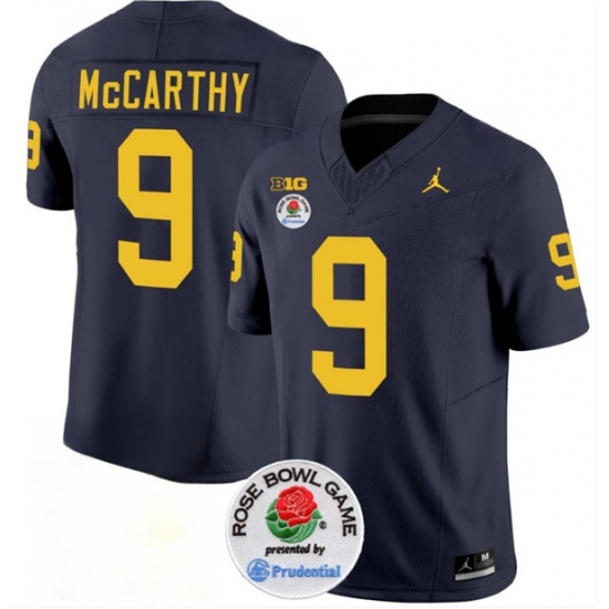 Men's Michigan Wolverines #9 J.J. McCarthy 2023 F.U.S.E. Navy Blue Rose Bowl Stitched Jersey