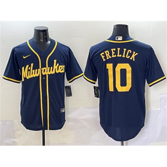 Home>MLB>Milwaukee Brewers>Sal Frelick>Men's Milwaukee Brewers #10 Sal Frelick Navy Cool Base Stitched Jersey