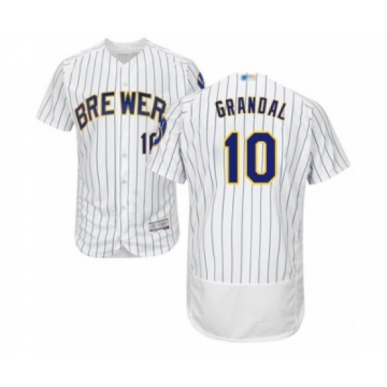 Men's Milwaukee Brewers #10 Yasmani Grandal White Home Flex Base Authentic Collection Baseball Jersey