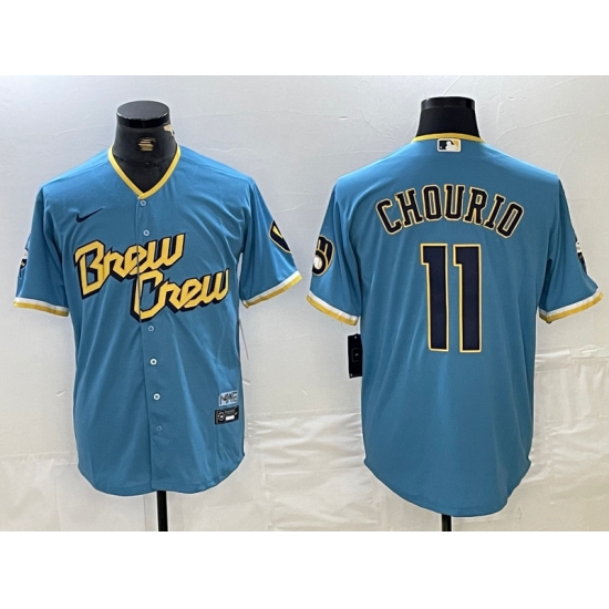Men's Milwaukee Brewers #11 Jackson Chourio Blue 2022 City Connect Cool Base Stitched Jersey