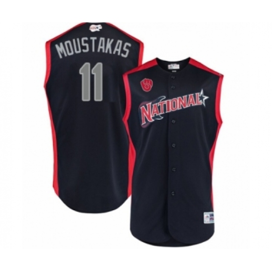 Men's Milwaukee Brewers #11 Mike Moustakas Authentic Navy Blue National League 2019 Baseball All-Star Jersey