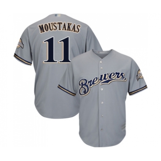 Men's Milwaukee Brewers #11 Mike Moustakas Replica Grey Road Cool Base Baseball Jersey