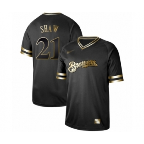 Men's Milwaukee Brewers #21 Travis Shaw Authentic Black Gold Fashion Baseball Jersey