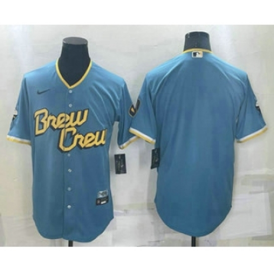 Men's Milwaukee Brewers Blank Blue 2022 City Connect Cool Base Stitched Jersey