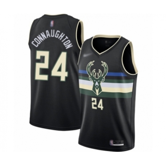 >Men's Milwaukee Bucks #24 Pat Connaughton Authentic Black Finished Basketball Jersey - Statement Edition