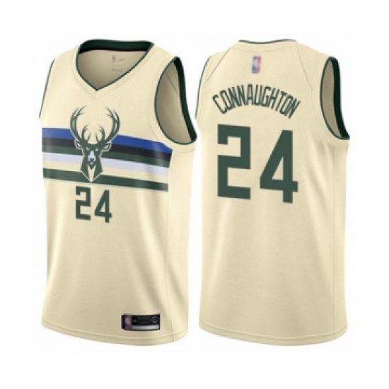 >Men's Milwaukee Bucks #24 Pat Connaughton Authentic Cream Basketball Jersey - City Edition