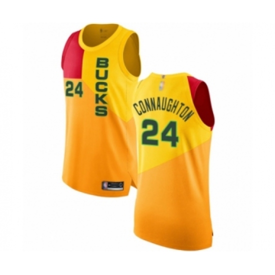 Men's Milwaukee Bucks #24 Pat Connaughton Authentic Yellow Basketball Jersey - City Edition