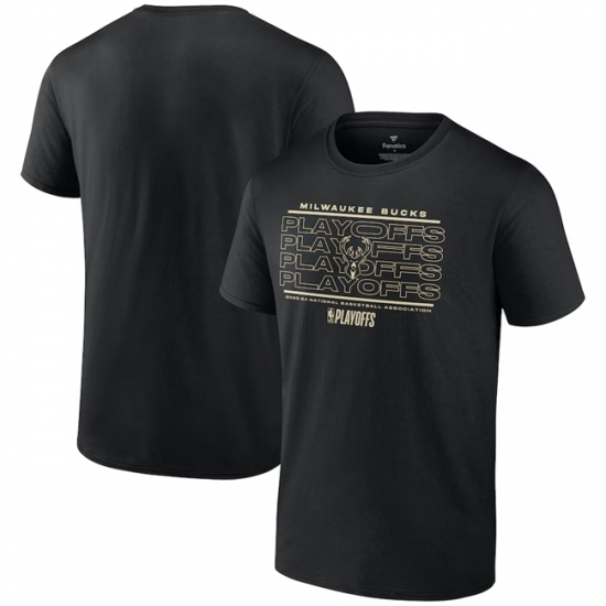 Men's Milwaukee Bucks Black 2024 Playoffs Fast Break Opportunity T-Shirt