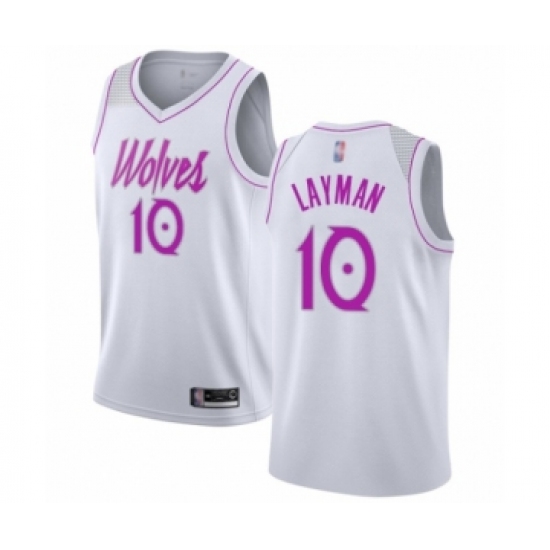 >Men's Minnesota Timberwolves #10 Jake Layman White Swingman Jersey - Earned Edition