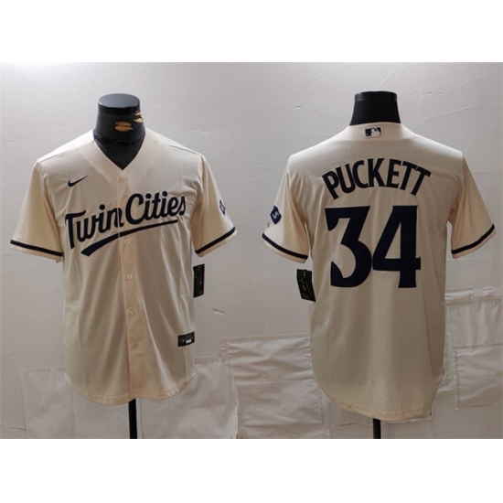 Men's Minnesota Twins #34 Kirby Puckett Cream Cool Base Stitched Baseball Jersey